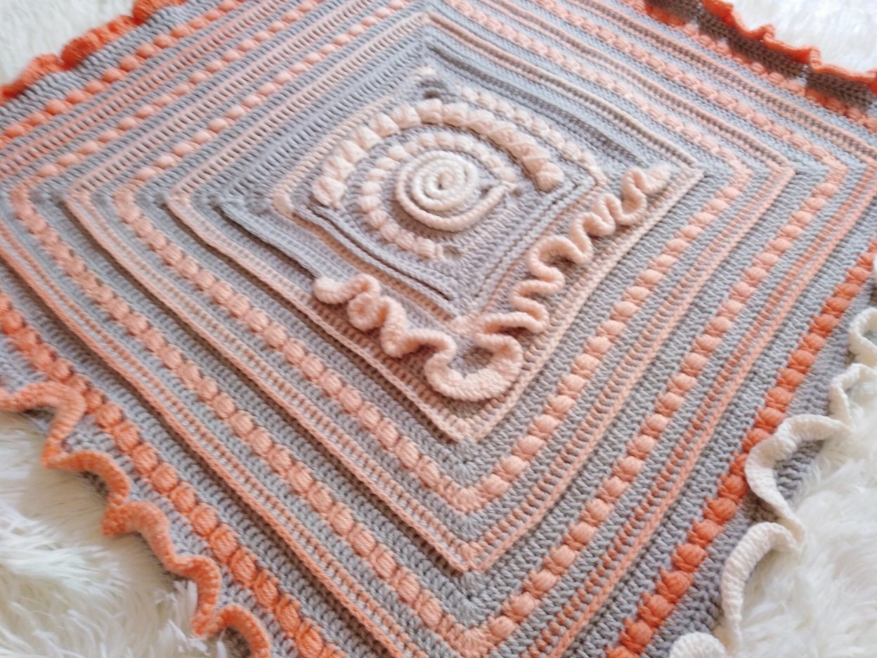 Dancing Squares. Overlay mosaic crochet in rows pattern